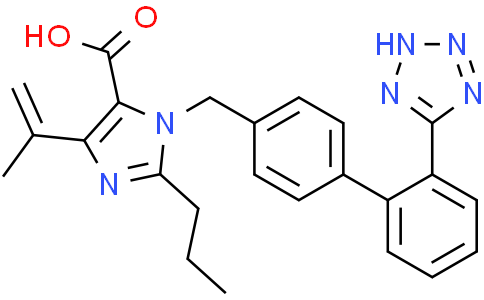 Dehydro Olmesartan 是奥美沙坦 (Olmesartan) 的脱氢衍生物。Olmesartan 是血管紧张素 II 受体 (AT1R) 拮抗剂,可用于高血压的研究。