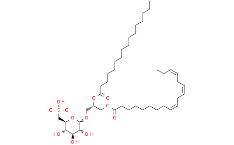 SQDG 是一种天然含硫阴离子糖脂 (硫脂),是自然界中最丰富的有机硫化合物之一。SQDG 能够抑制 Topoisomerase I 和 P-selectin receptor,表现出抗炎、抗病毒和抗肿瘤活性。