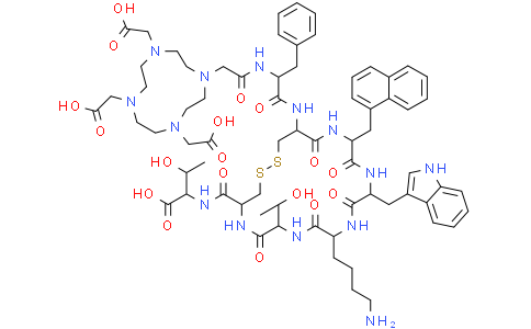 DOTA-NOC 是 SSTR2/3/5 广谱高亲和的 DOTA-奥曲肽衍生物。DOTA-NOC 可用于多种放射性金属的标记,以及用于成像的放射性肽的开发。DOTA-NOC 可用于放射性核素偶联药物 (RDC) 的合成/研究。