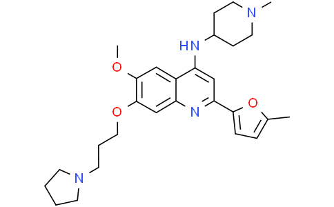 CM-272 是一种首创的,有效的,选择性的,底物竞争性的且可逆的双重 G9a/DNA 甲基转移酶 (DNMTs) 抑制剂。CM-272 抑制 G9a,DNMT1,DNMT3A,DNMT3B 和 GLP,IC50 分别为 8 nM,382 nM,85 nM,1200 nM 和 2 nM。CM-272 抑制细胞增殖并促进细胞凋亡,诱导干扰素刺激的基因和免疫原性细胞死亡。CM-272 具有抗肿瘤活性。