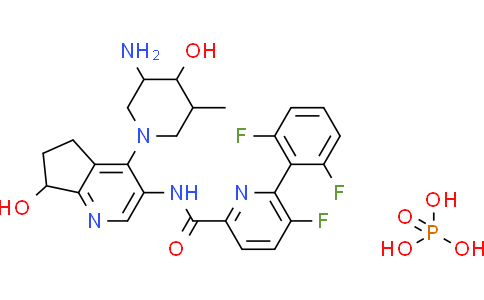 Uzansertib (INCB053914) phosphate 是一种具有口服活性的,ATP 竞争性泛-PIM 激酶抑制剂,对于 PIM1,PIM2 和 PIM3 的 IC50 分别为 0.24 nM,30 nM 和 0.12 nM。Uzansertib phosphate 对多种血液肿瘤细胞系具有广泛的抗增殖活性。