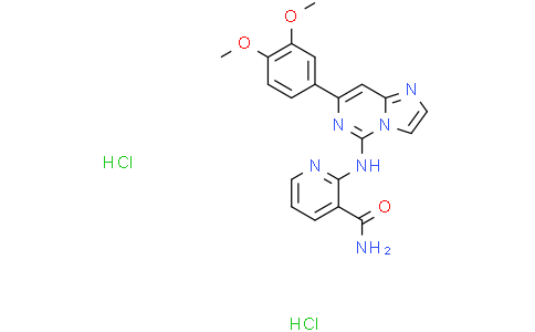 BAY 61-3606 dihydrochloride 是一种口服有效的,ATP 竞争性的,可逆的选择性 Syk 抑制剂,Ki 为 7.5 nM,IC50 为 10 nM。BAY 61-3606 dihydrochloride 降低神经母细胞瘤细胞中的 ERK1/2 和 Akt 磷酸化。BAY 61-3606 dihydrochloride 降低 K-rn 细胞裂解物中 Syk 磷酸化。Bay 61-3606 dihydrochloride 作用于乳腺癌细胞,通过下调 Mcl-1 促进 TRAIL 诱导的细胞凋亡。